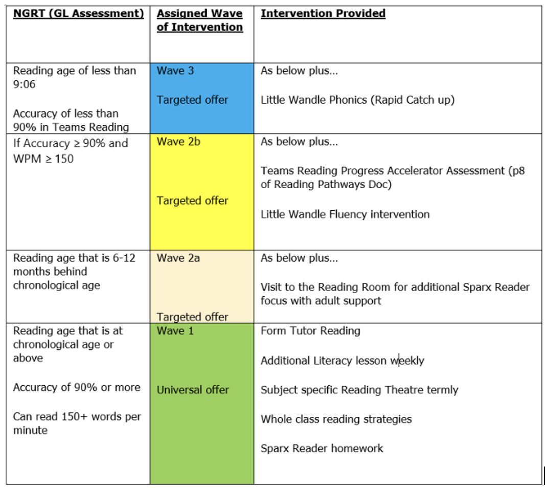 - Weekly Tutor time reading and whole-school reading initiatives.